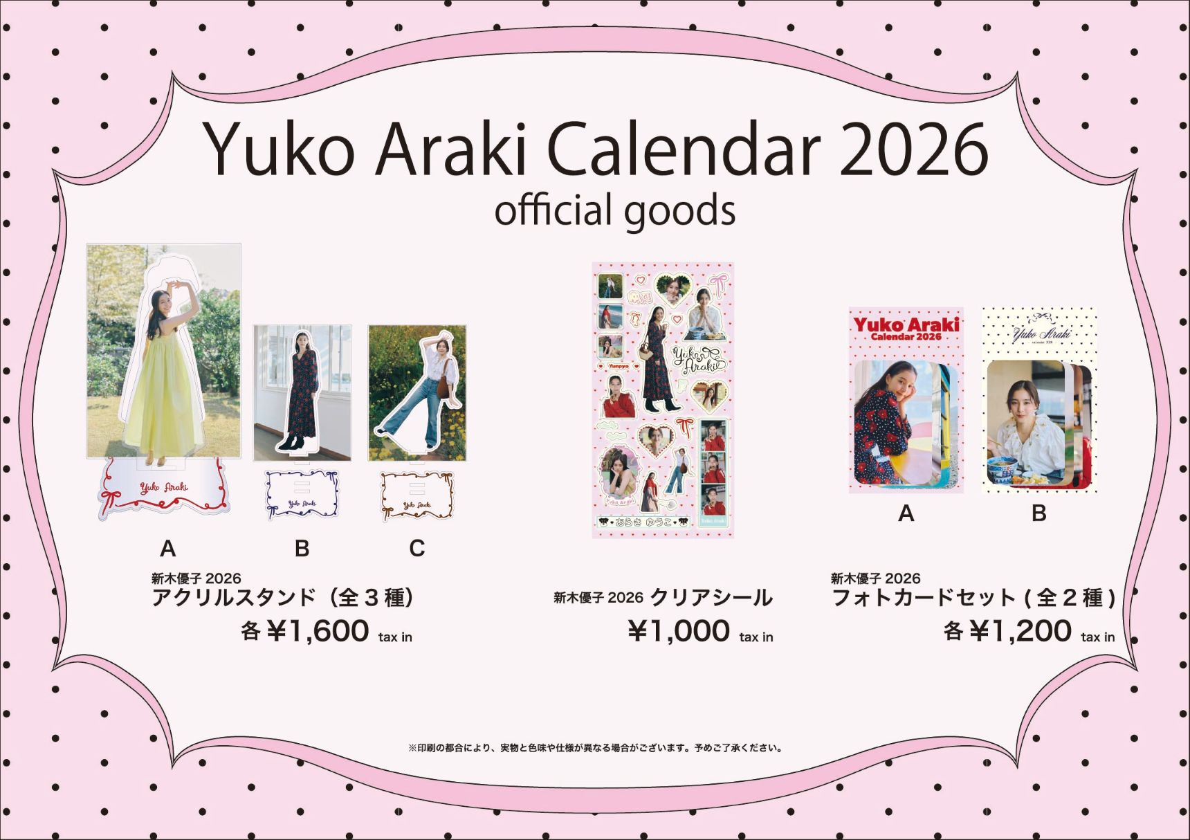 『新木優子オフィシャルカレンダー2026.4-2027.3発売記念イベント』@京都 当日会場物販のご案内